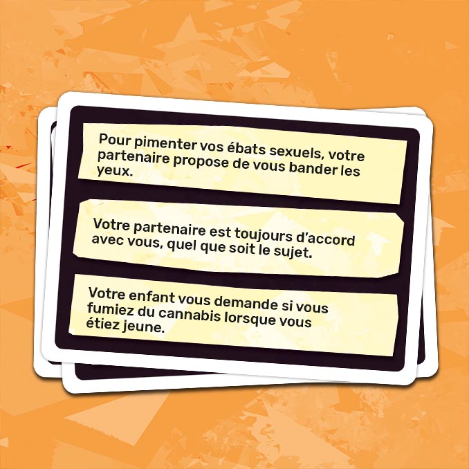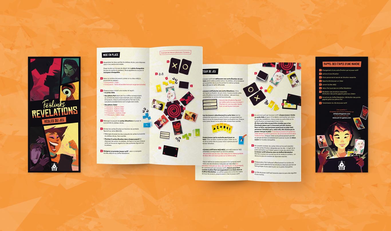 Allez hop ! Au lit les enfants, ce soir, c’est une soirée entre adultes ! Feelinks Revelations est la suite du jeu Feelinks et il a bien grandi. Nouveau design, format différent, identité plus moderne, couleurs plus soutenues… Cette fois, c’est bien un jeu pour les plus grands. On aurait même pu ajouter le logo PEGI 16+. Comme pour chaque jeu, nous avons travaillé sur de nombreux tests pour aboutir à ce packaging final. Maintenant, c’est à vous de jouer : ouvrez le coffret et découvrez à quel point vous vous connaissez.